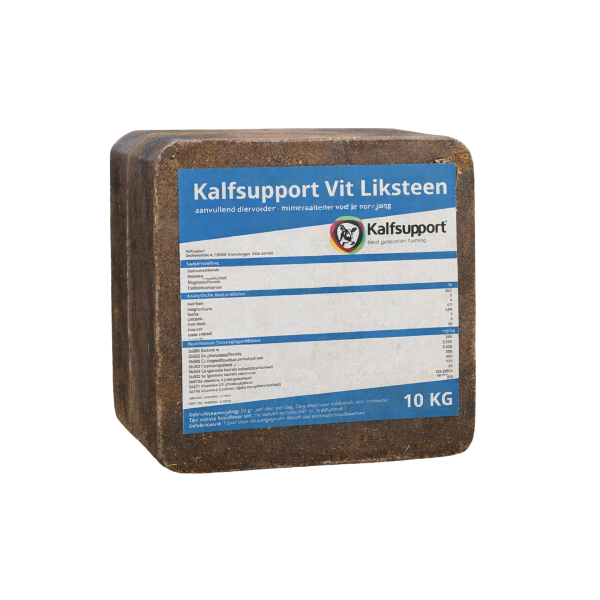 De Kalfsupport Vit Liksteen is een hoogwaardig aanvullend diervoeder (mineraalvoeder) dat specifiek is ontwikkeld voor de behoeften van jongvee. Deze liksteen van 10 kg biedt een constante bron van essentiële mineralen, spoorelementen en vitaminen, waardoor tekorten worden voorkomen en een gezonde groei en weerstand worden gestimuleerd.