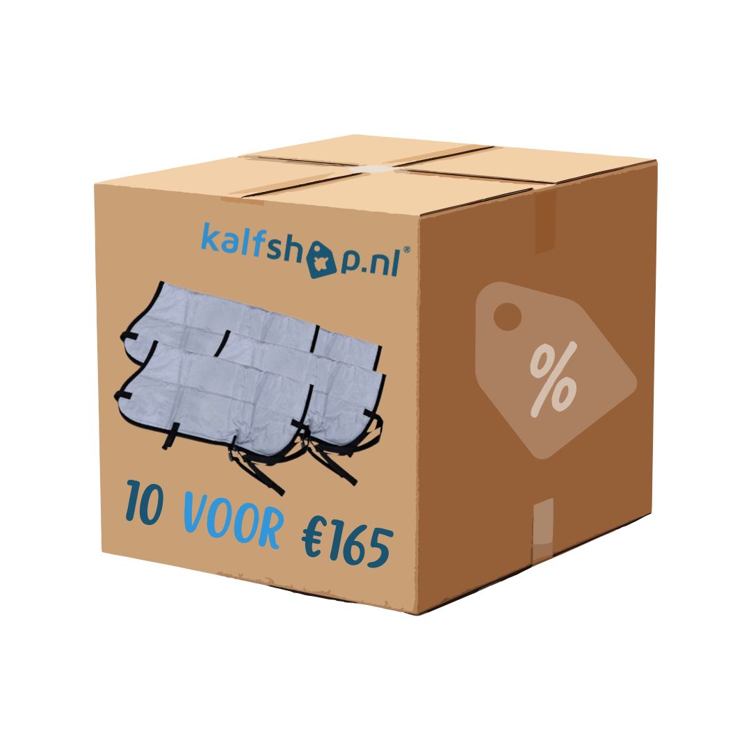 Investeer in de gezondheid van de jongste kalveren met de voordeeldoos grijze kalverdekjes van kalfshop.nl. Dit voordeelpakket bevat 10 grijze kalverdekjes.