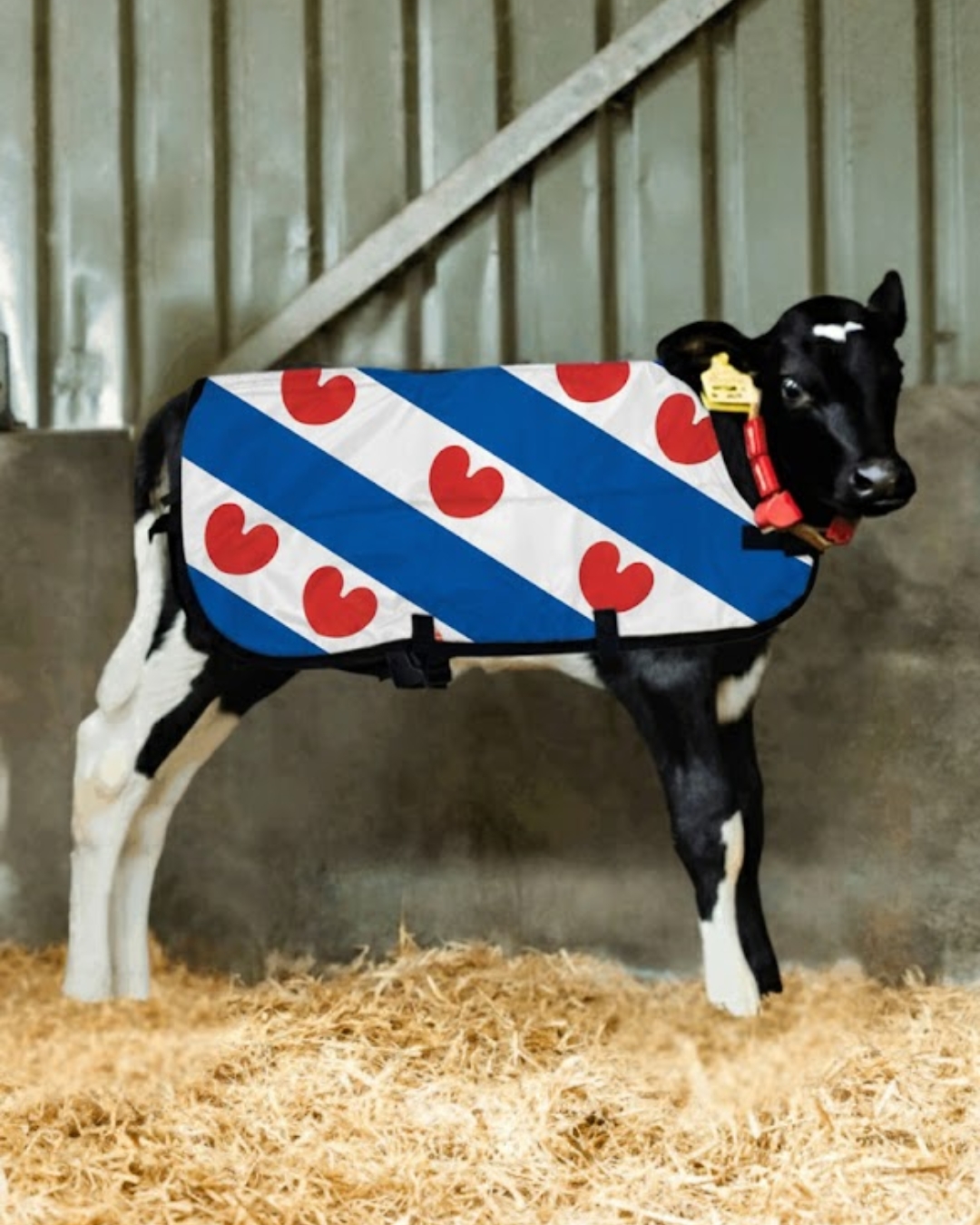 De Friese vlag kalverdekjes zijn voorzien van het iconische pompeblêd-patroon, een herkenbaar symbool van de Friese cultuur. Deze dekjes combineren functionaliteit met uitstraling en bieden jonge kalveren optimale bescherming tijdens de koude eerste levensweken.