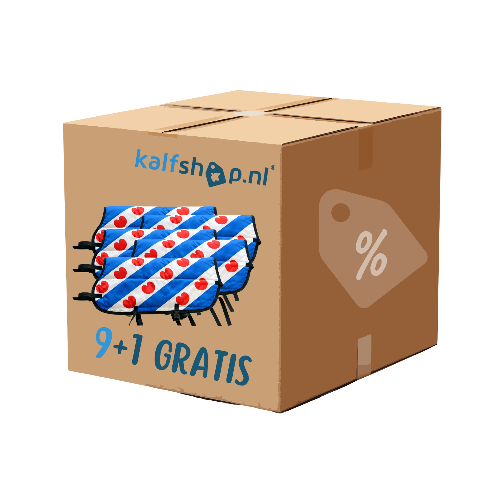 Met deze voordeeldoos Friese vlag kalverdekjes ontvangt u 10 warme en comfortabele kalverdekjes, terwijl u er slechts 9 betaalt. Van €195,- voor slechts €175,50. Ideaal voor veehouders die meerdere kalveren optimaal willen beschermen tegen kou én houden van een unieke Friese uitstraling.